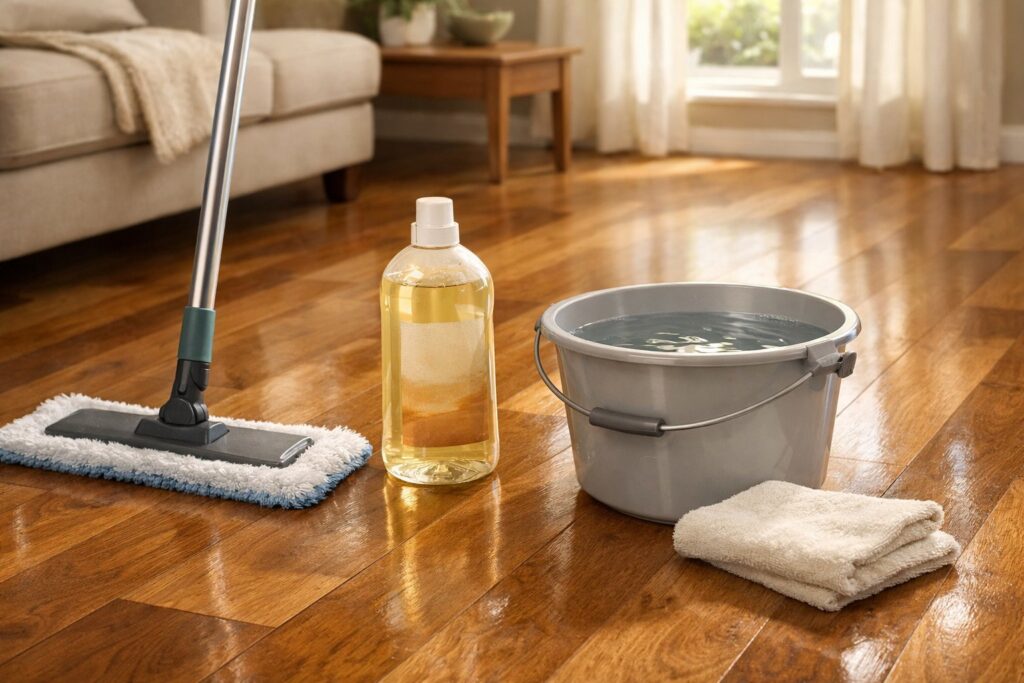 The right tools make a huge difference. Microfiber mops, pH-neutral cleaners, and the correct vacuum attachments help protect your floor’s finish and actually get rid of dirt.