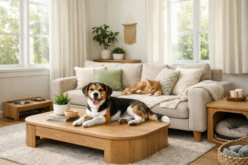 Smart furniture choices mix durability with style and meet your needs and your pet’s comfort. The right pieces resist damage, hide pet essentials, and create better traffic patterns for everyone at home.