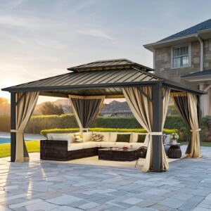 - Universal Compatibility:Designed to fit most standard-sized gazebos,providing a snug and secure fit for a variety of outdoor structures.the mosquito netting screen wall has accurate size which is suitable for pavilions,Please confirm your gazebo size carefully before ordering. Package include:mosquito net+hooks+hanging rings,top roof and gazebo are not included