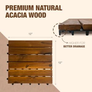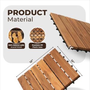 9 PCS Interlocking Deck Tiles 12" x 12" – Premium Acacia Wood Patio Tiles Waterproof – Deck Tiles Interlocking All Weather Waterproof Flooring – Easy Installation for Indoor & Outdoor (Golden Steak)