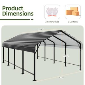 KING BIRD 13X20FT Heavy Duty RV Carport – 12.3FT Ultra High Peak Anti-Snow Outdoor Storage Shed Shelter for Full-Size Trucks/SUVs with Roof Racks, Boats. Garage Car Canopy-Dark Gray